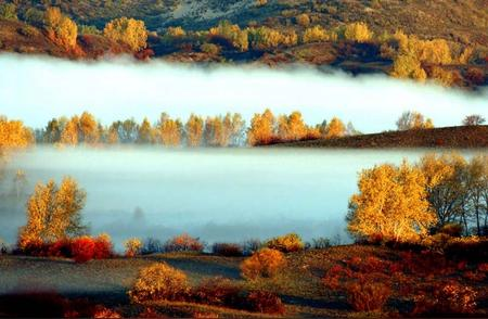 它们以不同的姿态展现在你面前,却又完美融合在一起。而在北疆的童话世界中,每年从九月开始,整个北疆就上演着一场色彩交响。