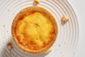 葡式蛋挞添加了奶油,表皮会有焦糖琥珀色黑斑。