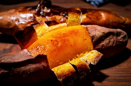 我们可以买一些比较好吃的红薯,自己在家里烤,或者呢切成片在电饼铛里加热,以前小时候吃的烤红薯,是在煤火边上烤成的,烤好了以后外焦里嫩的,掰开以后里面沙沙的软软的,吃了特别的香。给大家介绍的这种烟薯25号,它的口感就特别的甜,是这几年的新品种,皮特别的薄,里面还有糖心,而且肉质非常的甜。