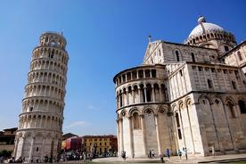 意大利比萨斜塔修建于1173年,由著名建筑师那诺·皮萨诺主持修建。它位于罗马式大教堂后面右侧,是比萨城的标志。开始时,塔高设计为100米左右,但动工五六年后,塔身从3层开始倾斜,直到完工还在持续倾斜,在其关闭之前,塔顶已南倾(即塔顶偏离垂直线)3.5米。1990年,意大利政府将其关闭,开始进行整修。