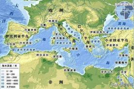 地中海位于亚洲、非洲和欧洲之间,是世界上面积最大的陆间海,地中海东西长度超过4000千米,南北最宽达1800千米,总面积达251万平方千米,平均深度达1450米,其中最深的地方位于希腊南面的伊奥尼亚海盆,海水深度达5121米。在地中海内部还分布着许多海洋,包括爱琴海、亚得里亚海、第勒尼安海、苏尔特湾、伊奥尼亚海等,但是不包括黑海。地中海几乎被上述三大洲包围,只有通过地中海西部的直布罗陀海峡与大西洋相连,而地中海东南部的苏伊士运河是后来我们人工开凿的,所以地中海自然的出口只有一个,那就是“直布罗陀海峡”。